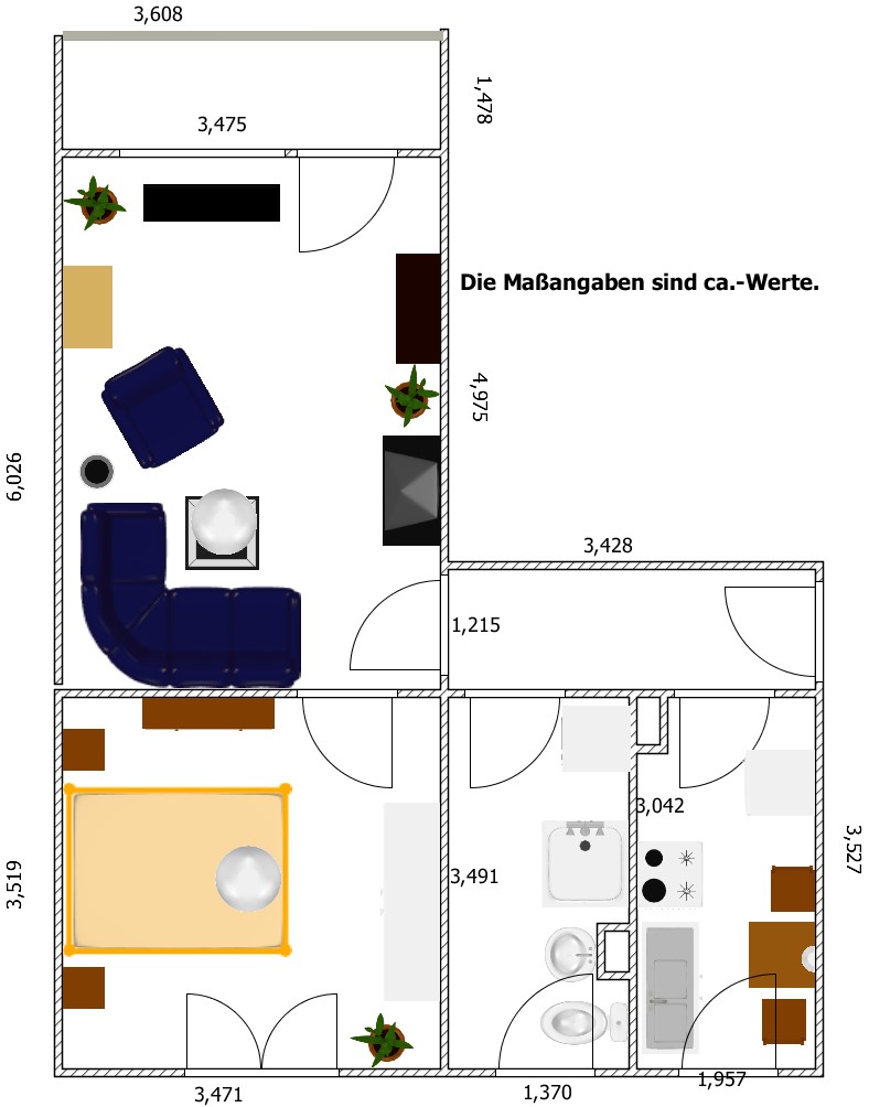 Balkon mit Windschutz, Küche mit Fenster, Bad mit Fenster, Dusche, Markise, Trockenkeller, Fahrradkeller, Treppenhausreinigung durch Reinigungsdienst
